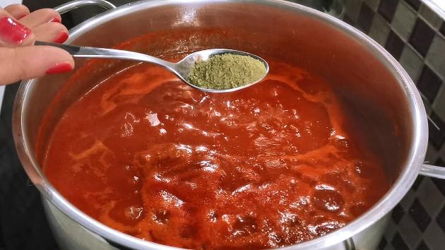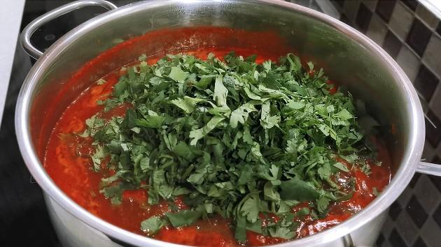 І, природно, без зелені тут не обійтися. Я додаю в аджику кінзу.