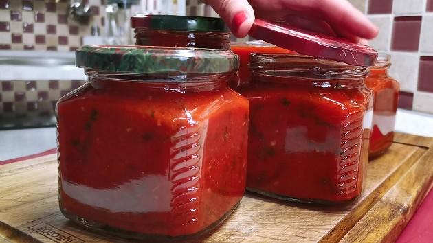 Аджика на зиму зі стерилізацією! Таку аджику я щороку консервую на зиму. Цим рецептом наша сім’я користується вже більше сорока років і я віддаю перевагу саме йому в порівнянні з усіма іншими рецептами. Зберігати аджику можна в теплому приміщенні. Стерилізую я її по повній програмі і не переживаю, що з баночками може щось трапиться без холодильника.