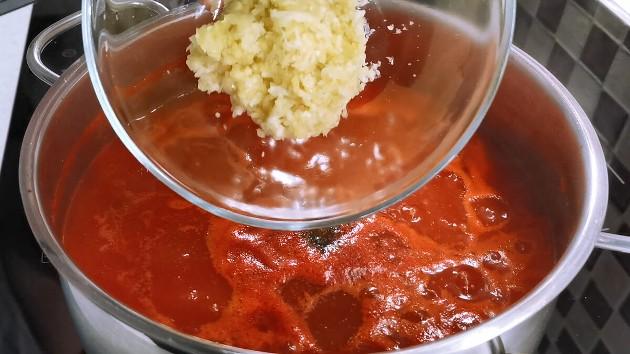Відразу викласти в аджику заздалегідь надавлений часник.