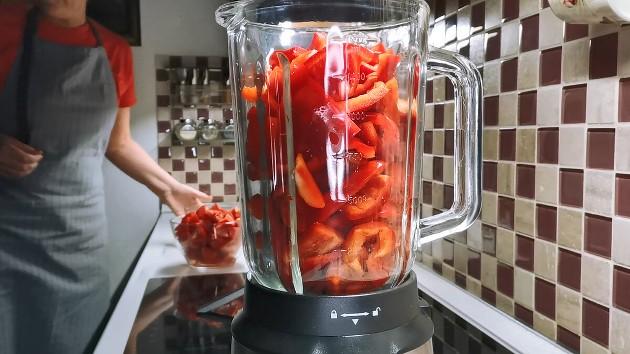 Точно таким же чином перемолоти болгарський перець і гострий перець чилі. Болгарський перець потрібно вибирати теж самий зрілий, найчервоніший і самий м’ясистий.