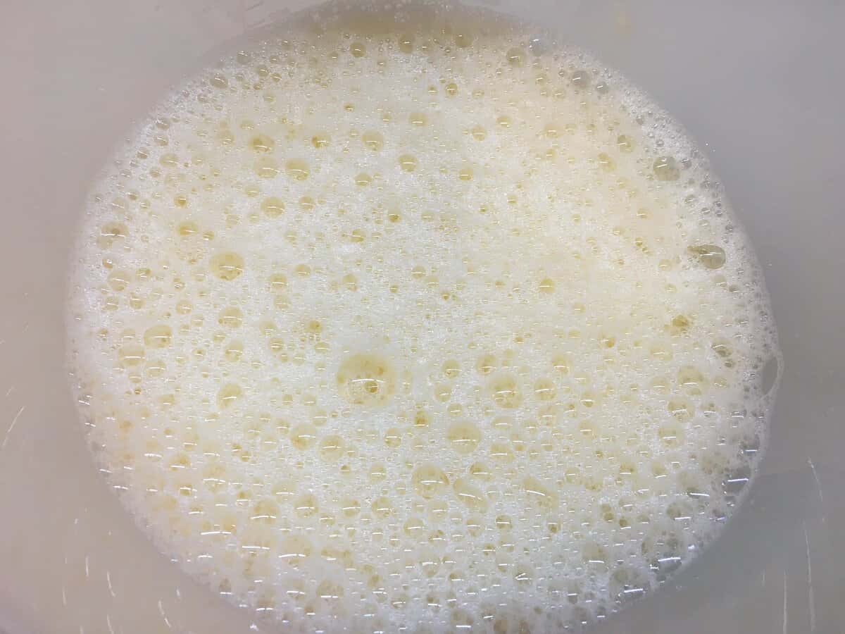 Яйця збиваю з сіллю до піни, додаю воду і ще раз збиваю. Виходить дуже піниста рідина.