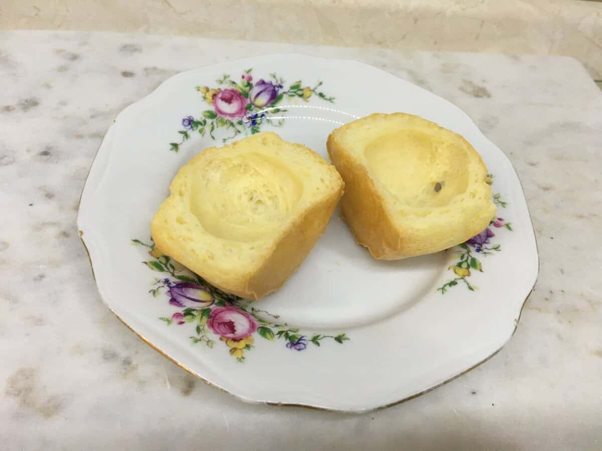 Усередині булочки порожнисті. Їх можна начиняти, чим захочите. Хоч солодким кремом, хоч солоною начинкою. А можна просто без начинки залишати. Роботи з ними рівно на 5 хвилин. Ну і півгодини — на випічку. Природно, американські чашки замінила на рідні граньоні склянки.