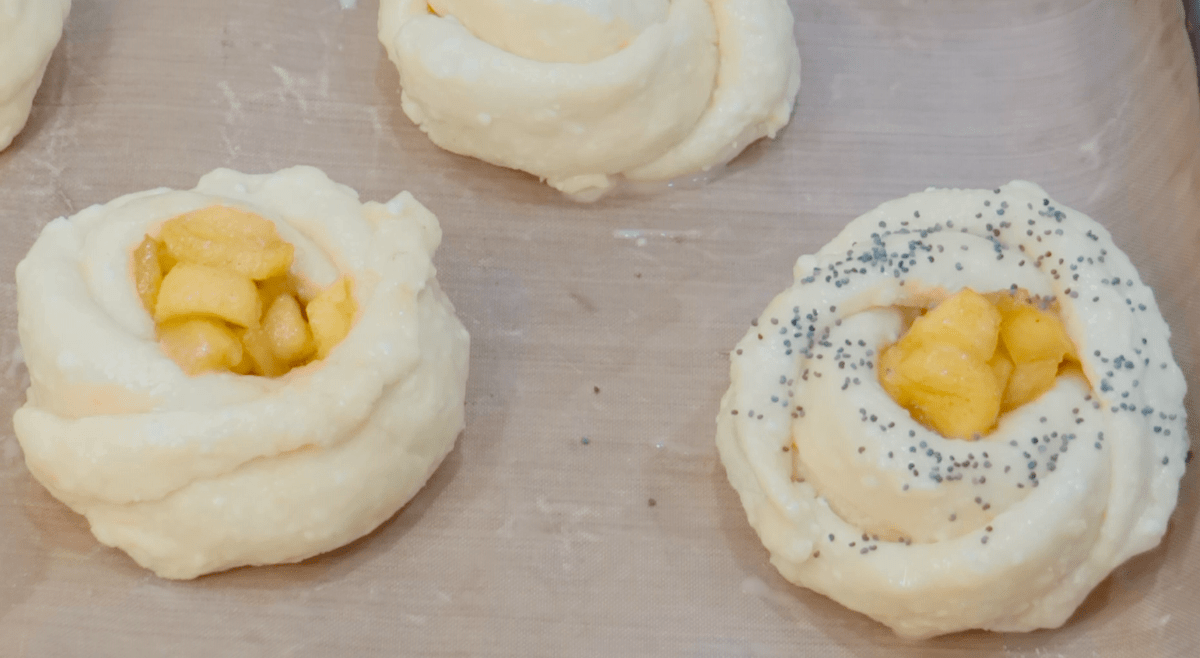 Пропоную приготувати дуже милі, пишні булочки – трояндочки з ніжного сирного тіста з карамелізованою яблучною начинкою. Домашня сирна випічка – це завжди дуже смачно і вдало, а в дуеті з яблуками і корицею ще й дуже ароматно! Приготувати таку випічку досить просто. Булочки виходять м’якими, смачними і ароматними, стануть відмінним доповненням до чаю або кави.