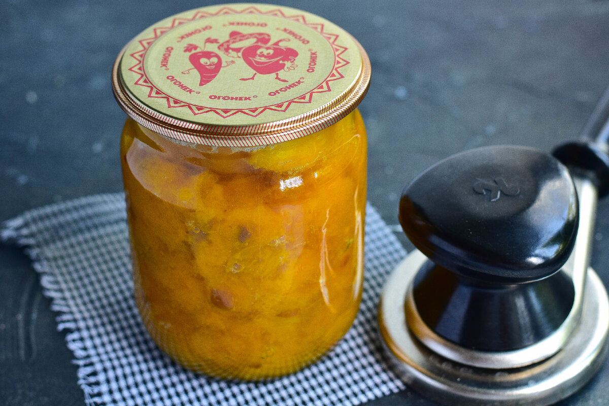 5. Готову суміш викладіть в скляну банку. Якщо ви плануєте поставити варення на зберігання, то заздалегідь простерилізуйте ємності зручним для вас способом.