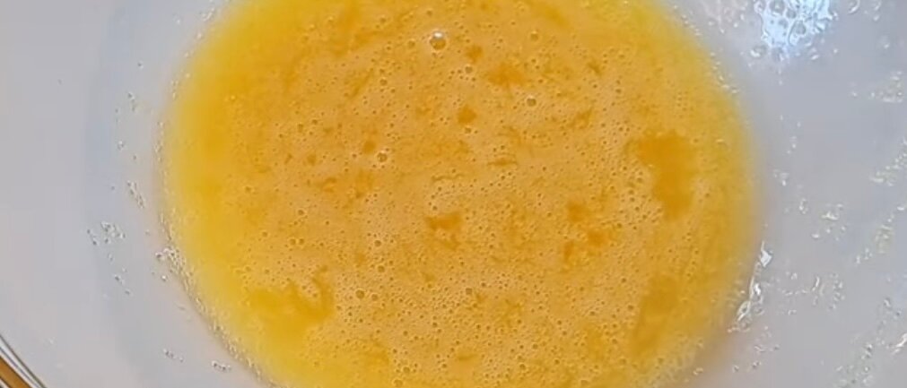 У велику ємність вбиваємо яйце, додаємо цукор і змішуємо вінчиком.
