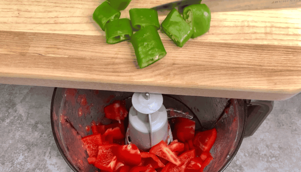 1. Помідори, болгарський перець та гострий Чилі пропускаємо через м’ясорубку або перемелюємо за допомогою блендера.