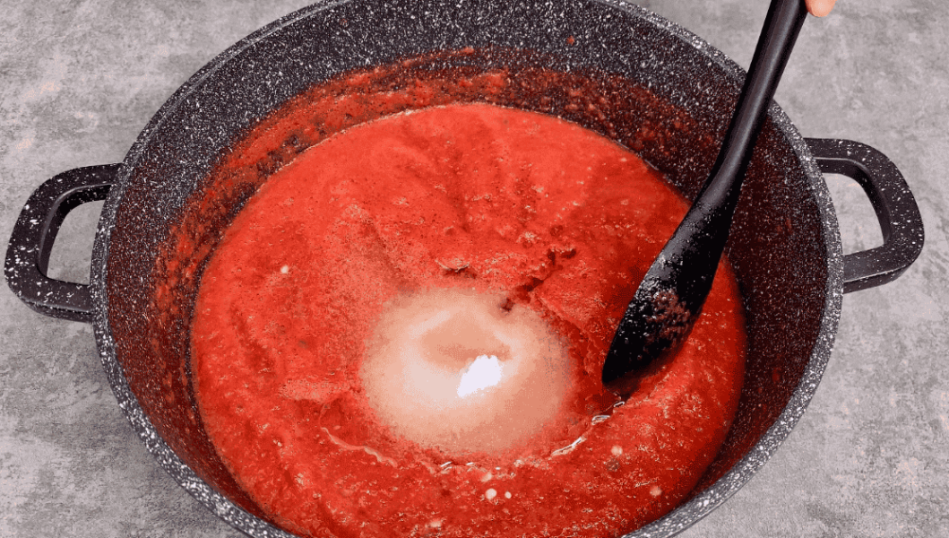 2. Ставимо каструлю на вогонь, доводимо до кипіння і додаємо цукор, сіль та олію. Перемішуємо і кип’ятимо пару хвилин.