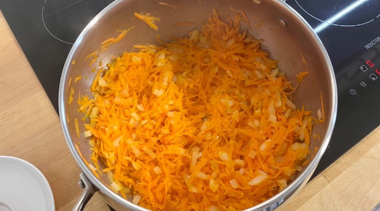 - У великій каструлі на олії обсмажую цибулю з морквою.