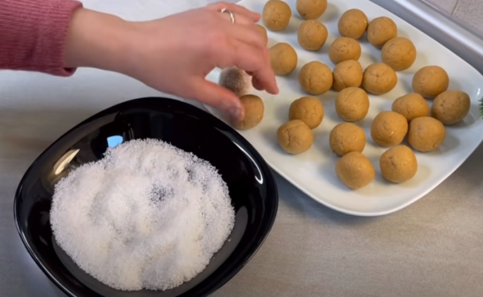 Обвалюємо в кокосовій стружці та відправляємо в холодильник на кілька годин.