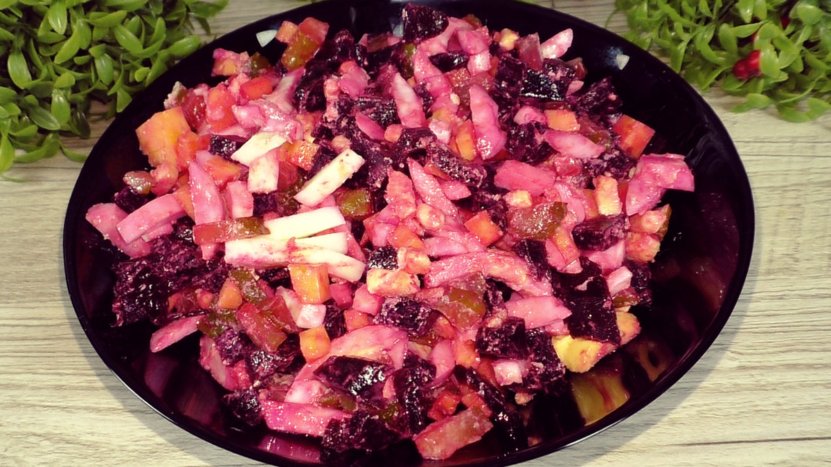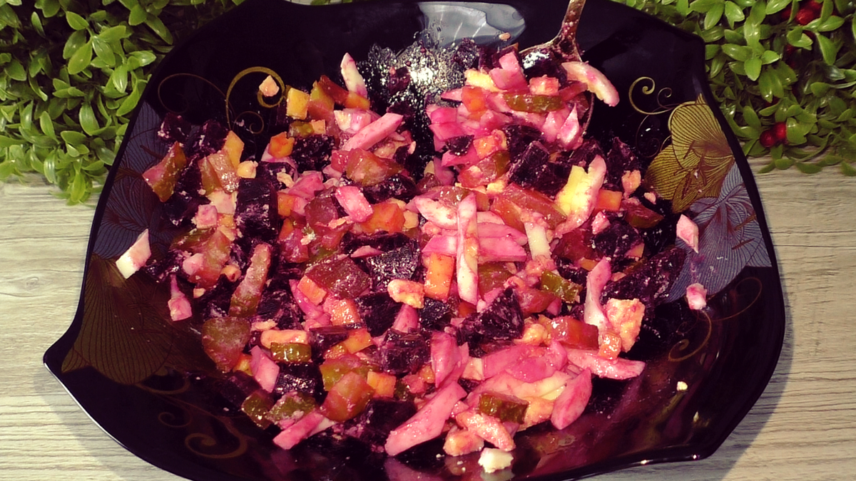 Смачний і простий в приготуванні салат з буряком. У ньому зовсім небагато інгредієнтів. Соковитий, смачний, солодкий буряк відмінно поєднується з іншими інгредієнтами.