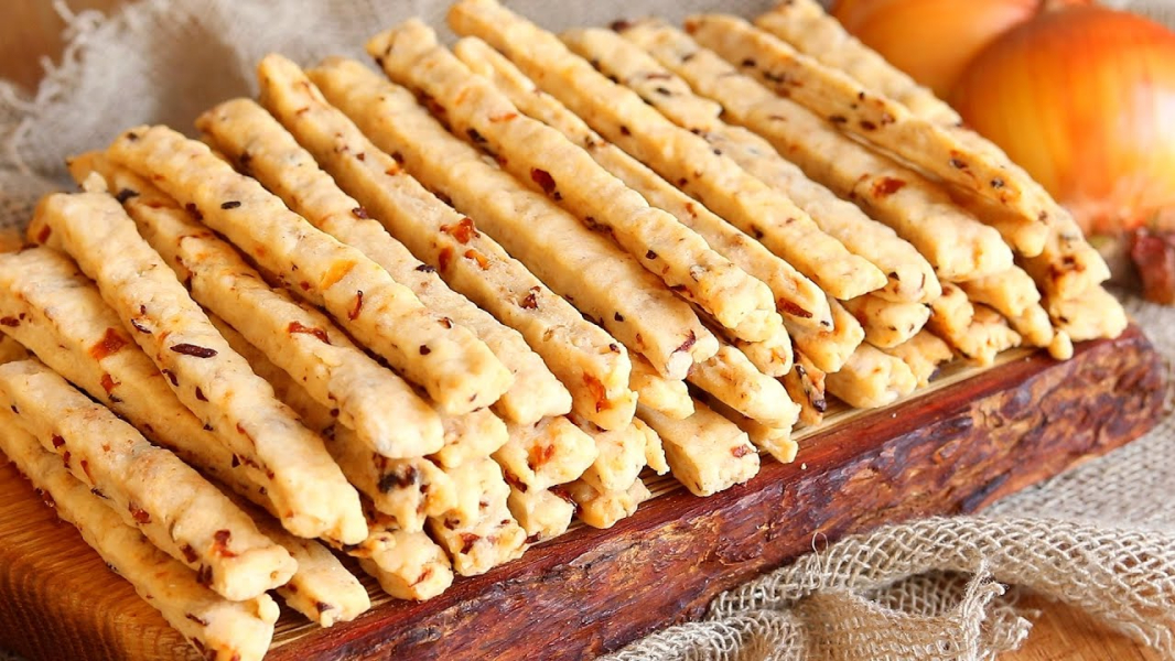 Швидкі домашні крекери. Готуються за лічені хвилини. Цибулеві крекери. Печиво зі смаженою цибулею. Печиво без цукру. Пісний рецепт. Випічка без яєць.