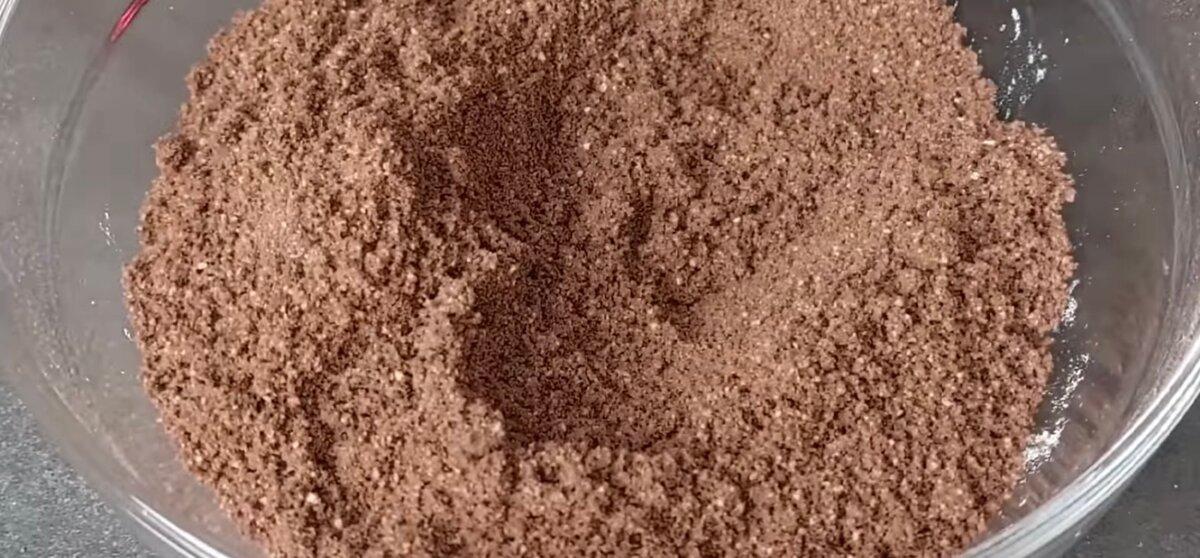 1. Печенюшки кришимо за допомогою кухонного комбайна і насипаємо в більшу ємність.