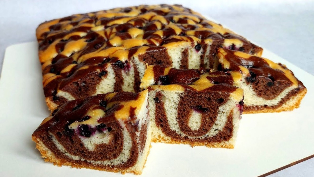 Швидкий та пухкий бісквітний пиріг з чорницею до чаю.