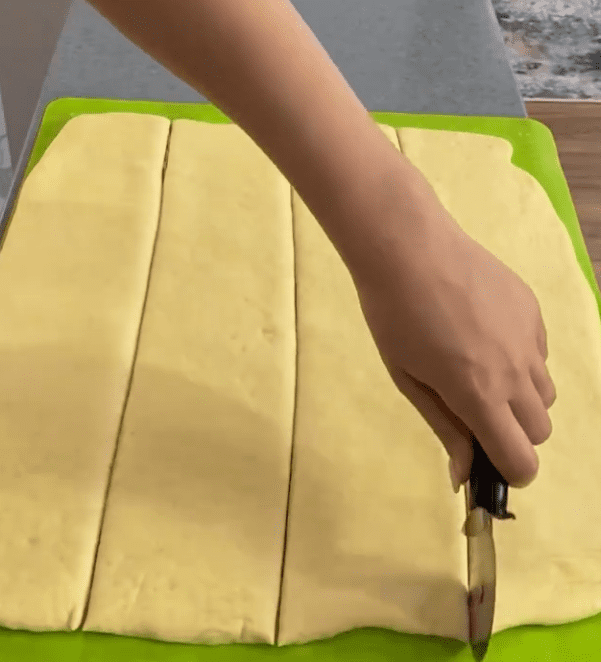 - Розрізати тісто на квадрати 8х8 см.