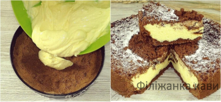 Готовий пиріг піднімається, але в міру охолодження осідає, згладжуючи тріщинки, що утворилися при випічці.