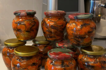 Баклажани в гострій аджиці Інгредієнти: баклажани 4-4,5 кг перець солодкий-1,2 кг (червоний) часник-200