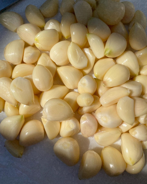 1. Зубчики часнику перед чищенням залила водою приблизно на 1 год. Часник так просто і швидко чиститься.