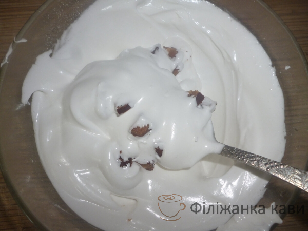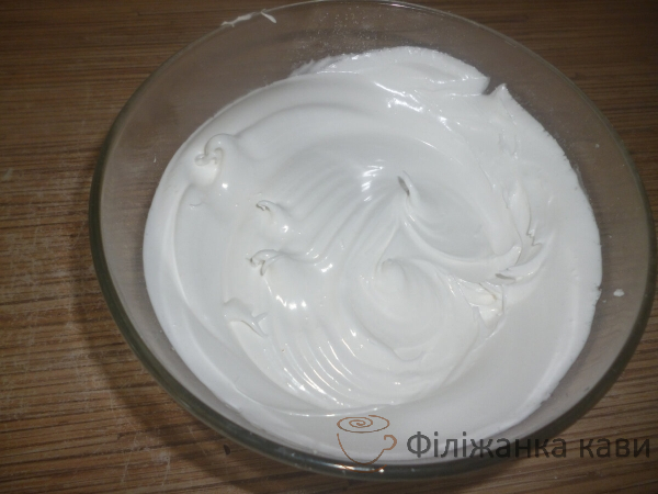 З 4 ст. л. цукру десерт виходить дуже солодким. І відразу все додавати не варто. Наше завдання добре збити білки.