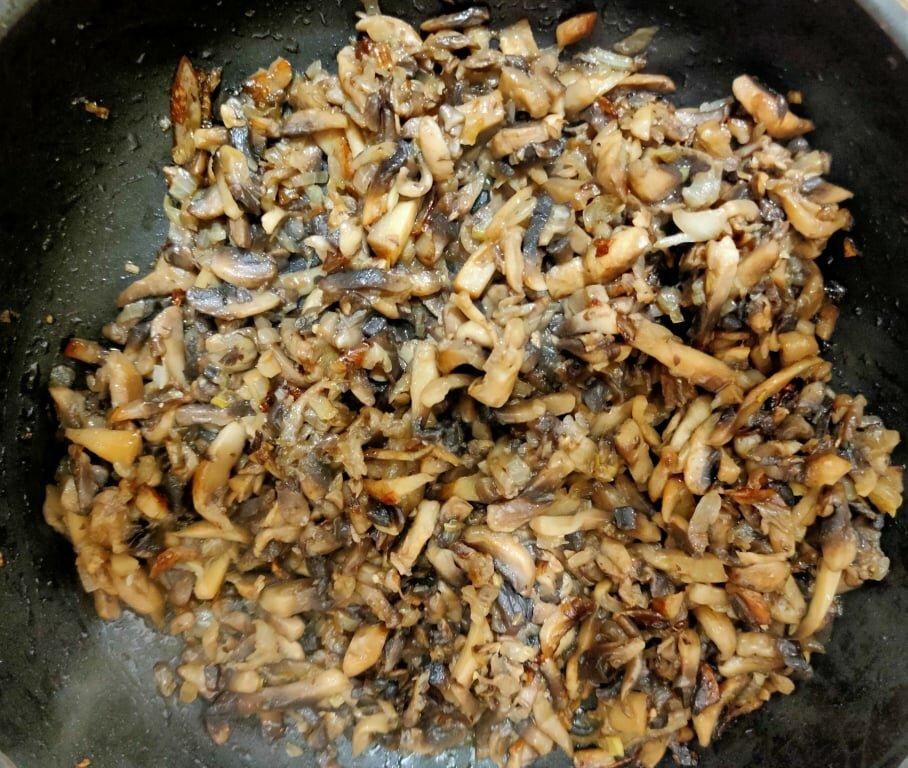 Потім відправляємо гриби до цибулі обсмажуватися на середньому вогні. Не забудьте на цьому етапі додати сіль і перець.