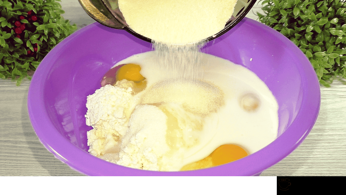 Форму для запікання змащую олією і трохи посипаю манною крупою.