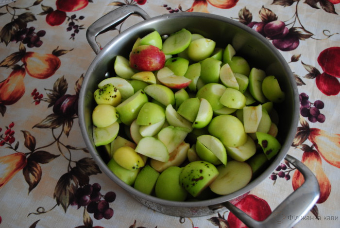 Для початку, гарненько вимиємо й наріжемо яблука. Різати часточки можна як завгодно. Все одно варення вийде, практично, однорідним.
