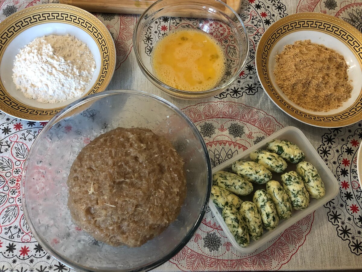 - З начинки формуємо невеликі «котлетки». Складаємо їх в контейнер і прибираємо хвилин на 15-20 в морозильну камеру (це потрібно для того, щоб начинка не витікала з котлет в процесі обсмажування).