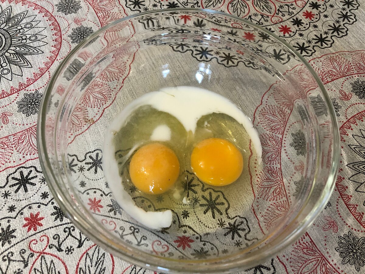 - Тепер приготуємо панірування. У миску розбиваємо 2 яйця, 1 – 2 ч. л. молока і сіль. Все розбовтує вилочкою.