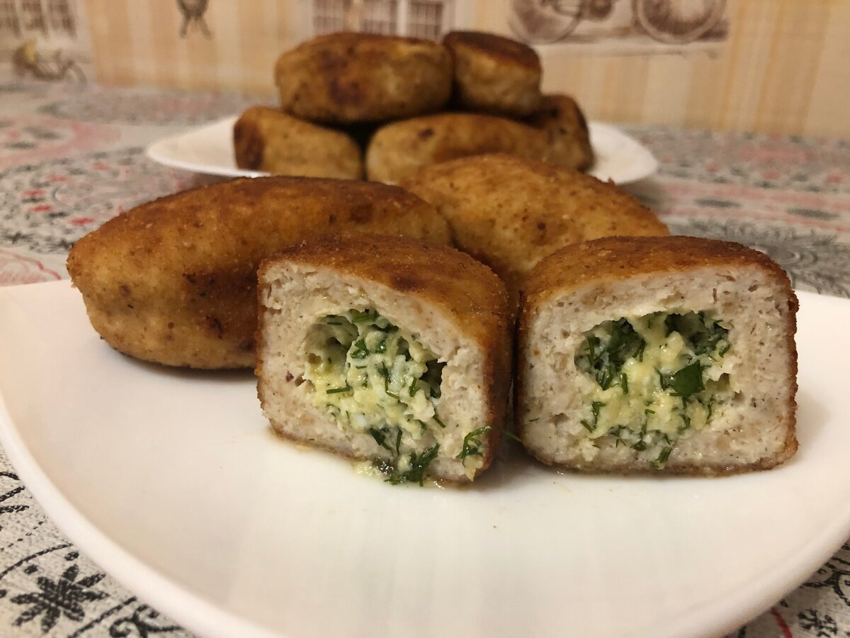 Коли хочеться поїсти незвичайних котлет, я готую ці смачні котлетки з начинкою. Називаються ці котлети «Пташине молоко», тому що готуються з курячого філе і яєць.
