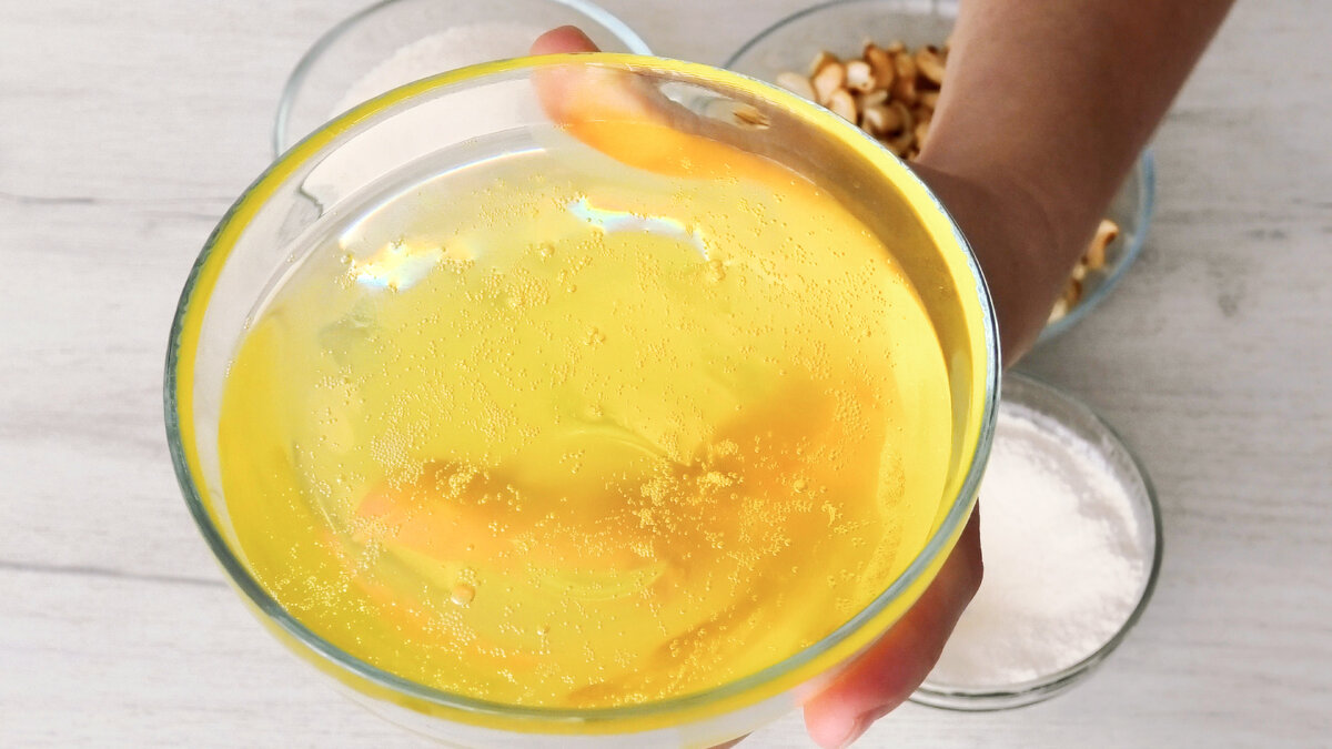 Заздалегідь підготувати яєчні білки, їх потрібно трохи заквасити. Для цього залишити білки закриті плівкою на ніч при кімнатній температурі. У мене на кухні це 23 гр. С. Якщо у вас жарко, то залиште їх на 2-3 години, а потім приберіть в холодильник. Якщо забули взагалі підготувати білки, то можна протерти їх крізь дрібне сито. У масі білка повинні утворитися дрібні бульбашки.