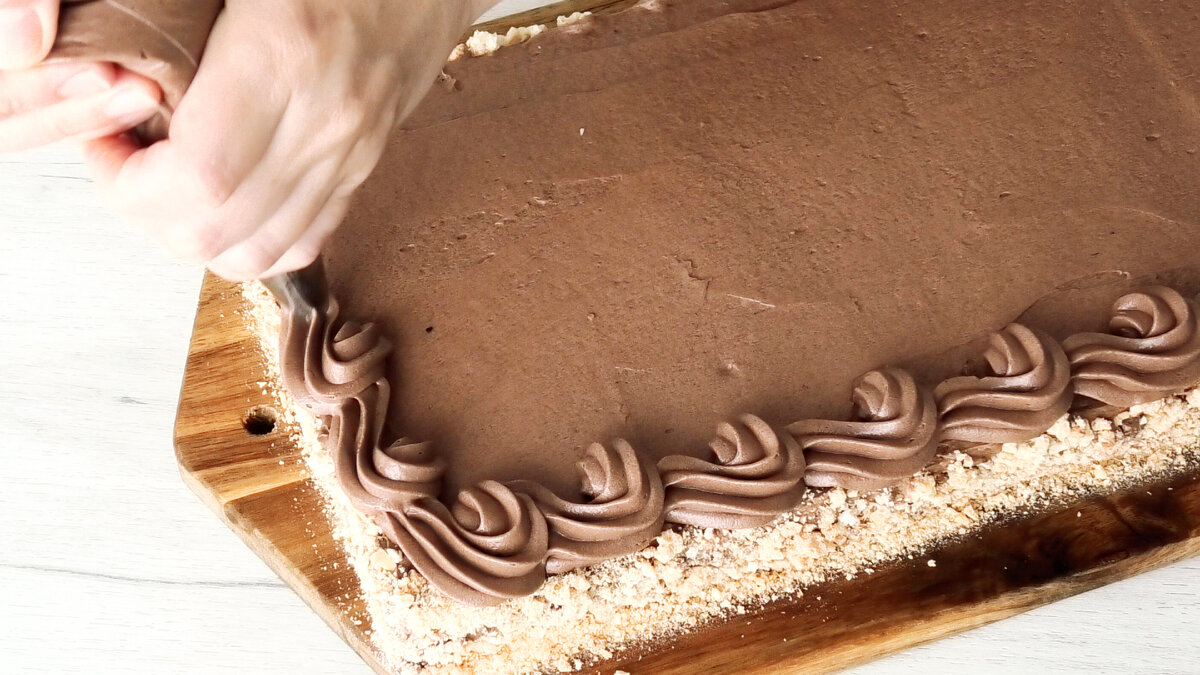 Далі з шоколадного крему зробити бортик по краю торта.