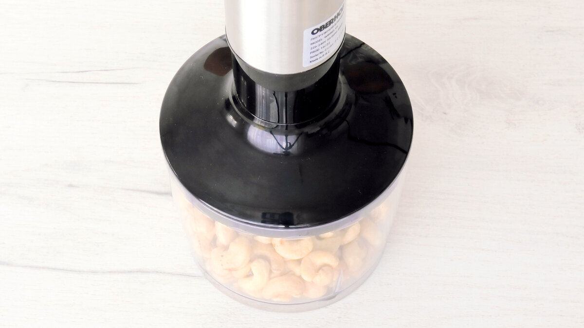 Обсмажені горішки подрібнити блендером, повинні бути як дрібні, так і великі шматочки горіхів.