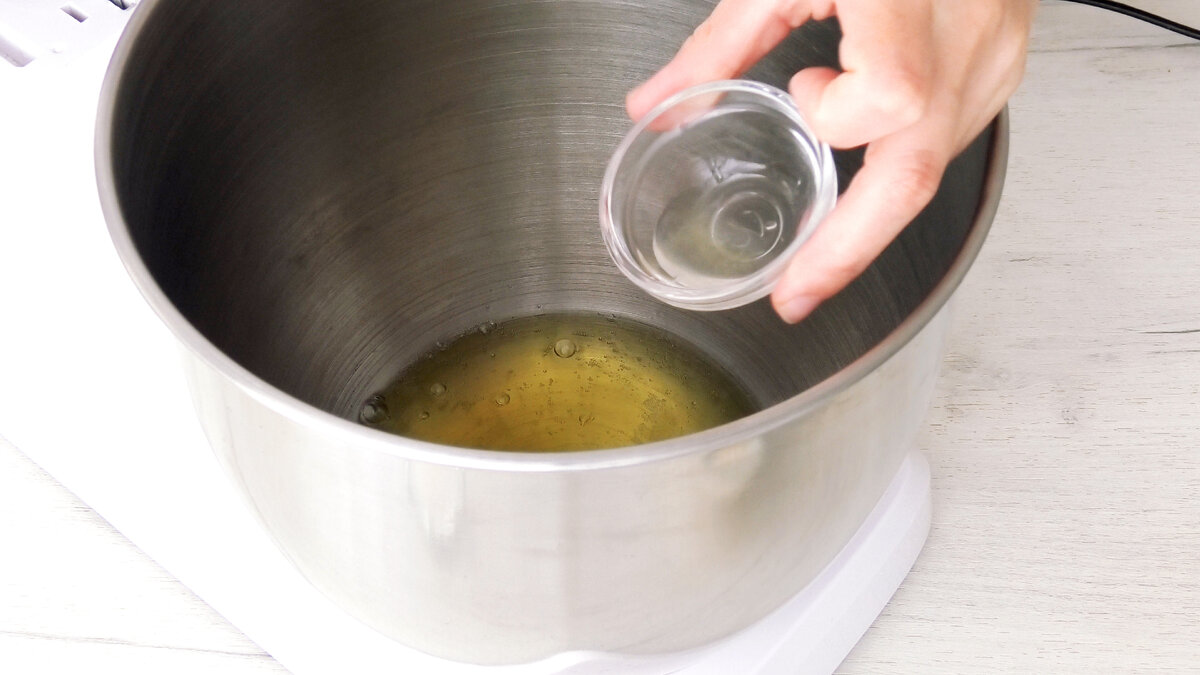 У суху і чисту чашу міксера вилити білки і додати до них лимонний сік.
