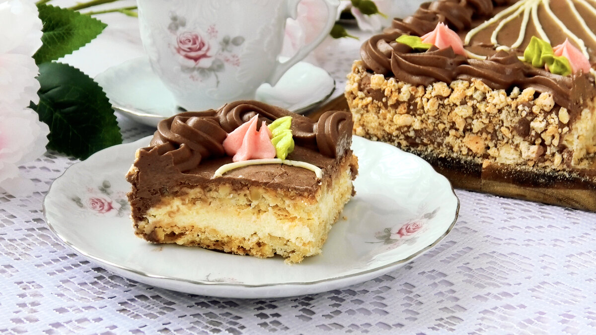 У перший день торт хрусткий, а ось простоявши ніч в холодильнику став м’якше і різався вже краще, але в будь-якому варіанті мені він дуже сподобався!