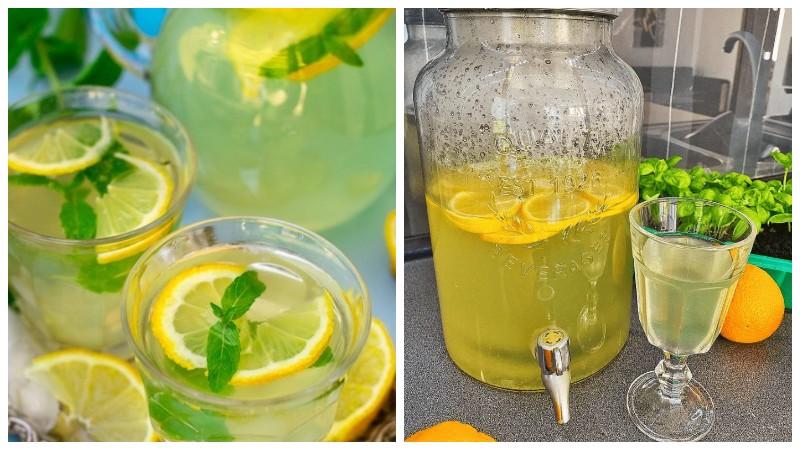 - Проціджуємо напій. Додаємо сік лимона, лід, нарізаний лимон, листя м’яти.