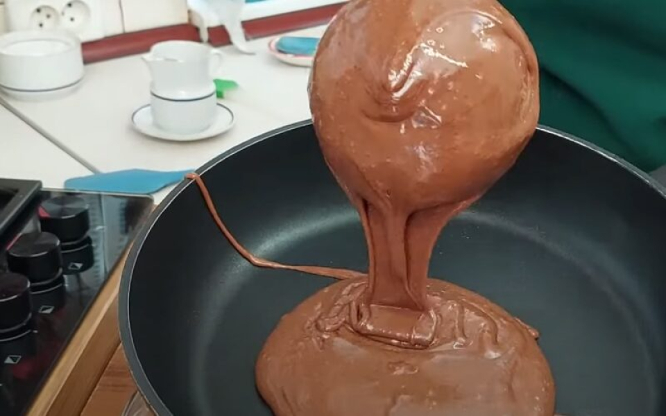Сковороду злегка змащуємо олією, виливаємо половник тіста.