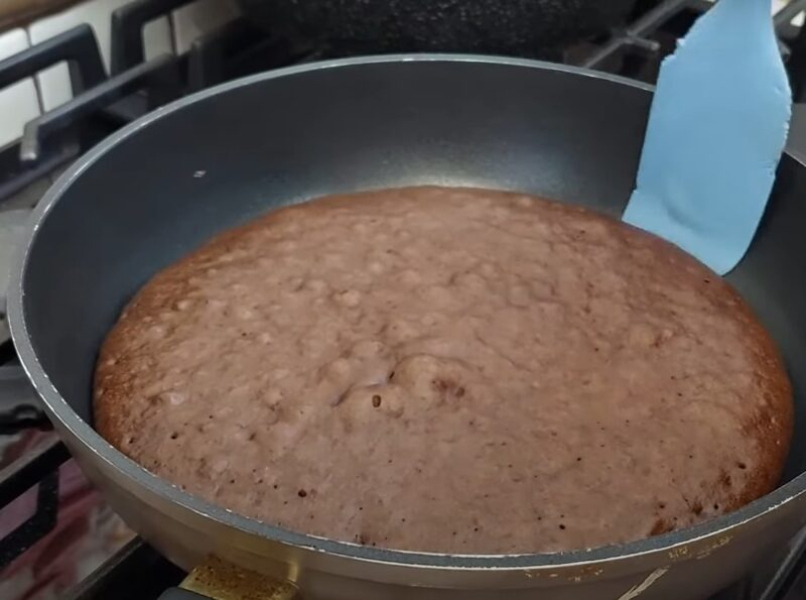 Перевертаємо корж на другий бік, смажимо приблизно хвилину під кришкою. Аналогічно готуємо решту коржів.