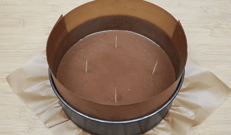 - Я випікаю бісквіт у роз’ємній формі діаметром 20 см. Дно форми закриваю пергаментним папером, бік форми тефлоновою стрічкою (можна замінити на цупкий пергамент). Сторона форми при випіканні нічим змащувати не треба.