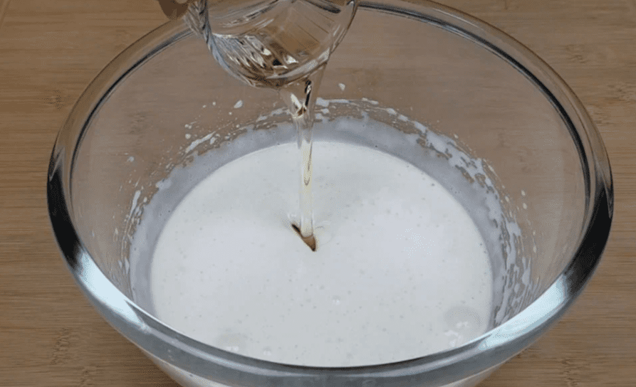 - Додаємо 1 склянку кефіру кімнатної температури. Кефір у цьому рецепті можна замінити на натуральний питний йогурт без добавок. Перемішуючи до однорідного стану.