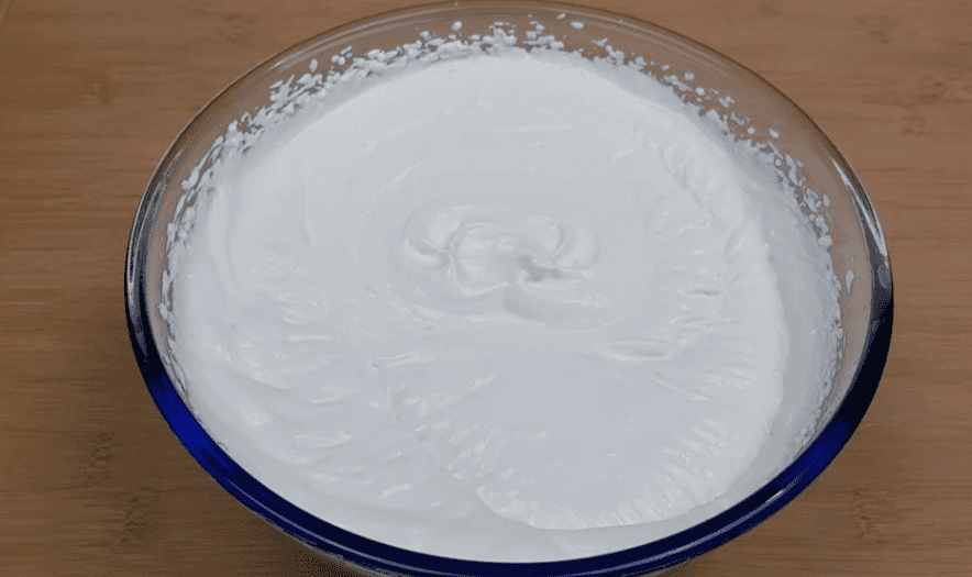- Крем стане повітряним і збільшиться приблизно в 2 рази. Відкладаємо 2 повні ст. ложки крему. Цим кремом в кінці обмажемо бік торта, а поки що прибираємо крем в холодильник.