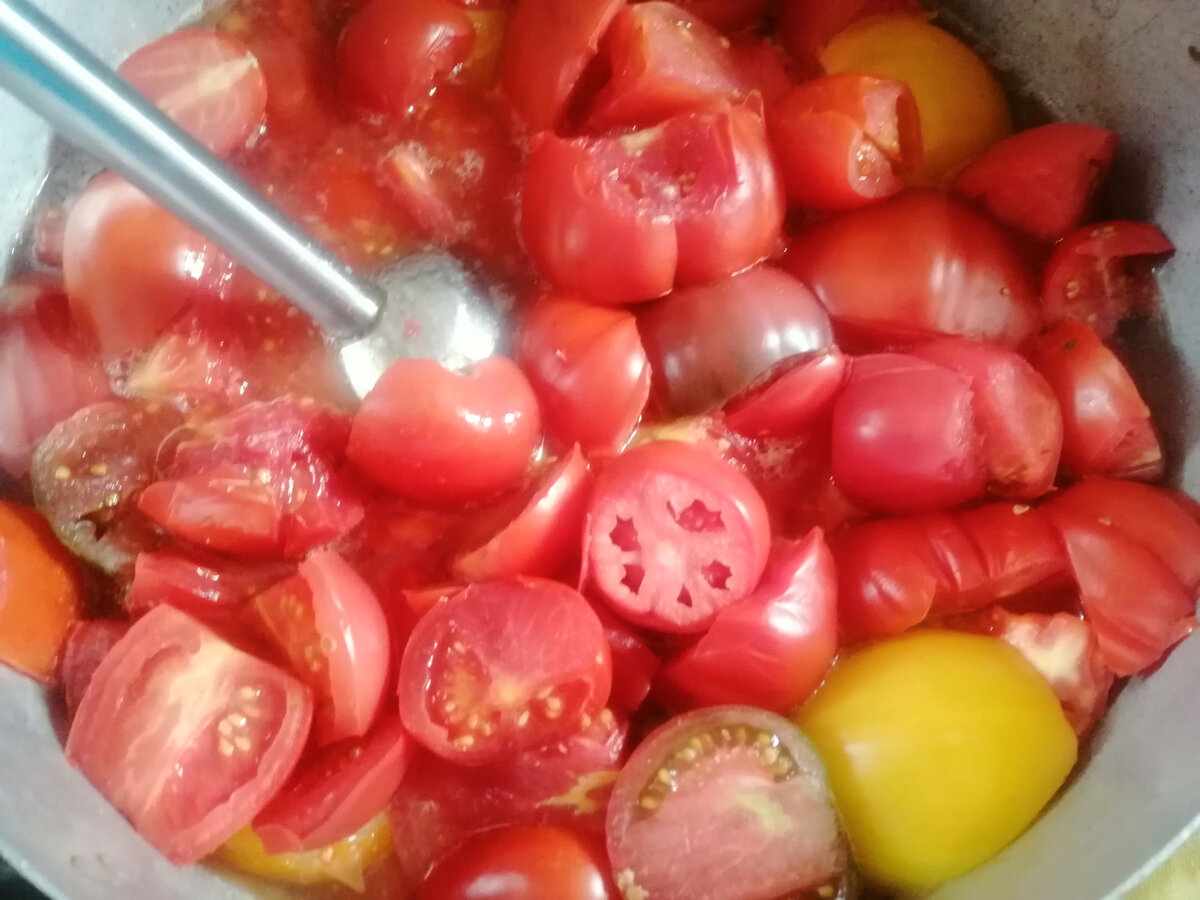 Ближче до кінця варіння обов’язково спробувати, чи вистачає вам у смаку солі і цукру. Помідори то різні бувають. Скорегувати за смаком.