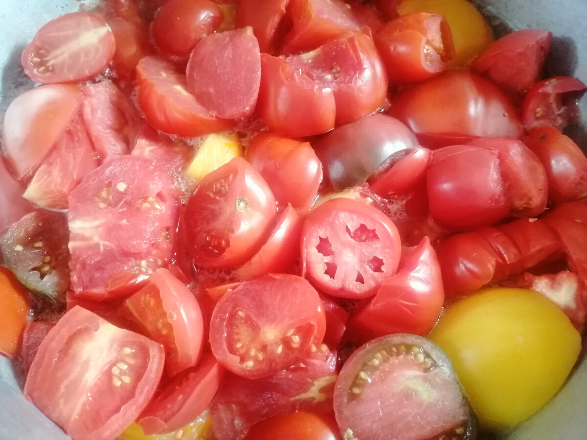 Помідори – підійдуть будь-які, навіть перезрілі або трохи пошкоджені. Їх треба промити і крупно нарізати.