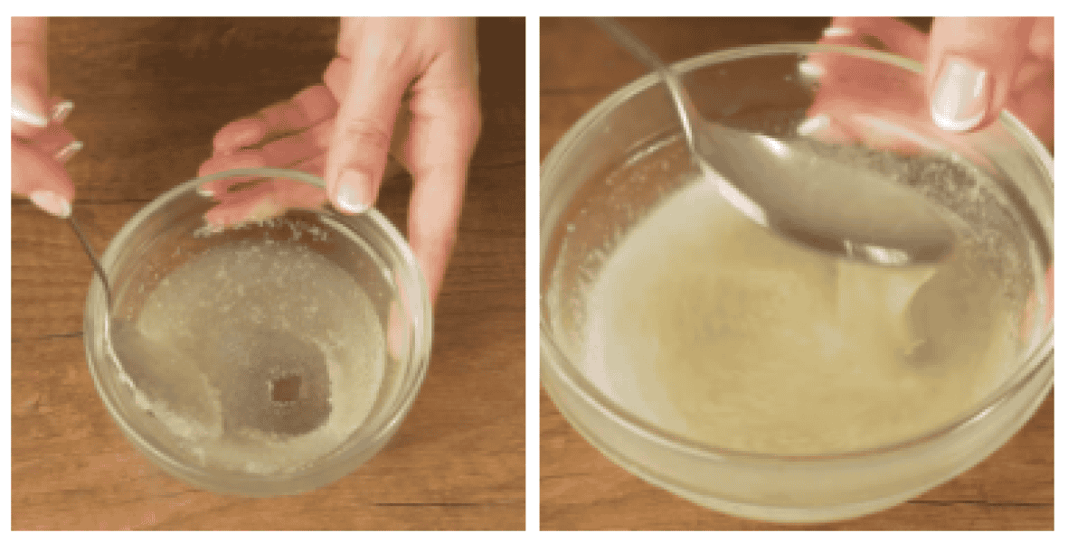 У миску насипаємо 15 г желатину та наливаємо 100 мл води. Все перемішуємо та залишаємо на 10 хвилин набухати желатин.