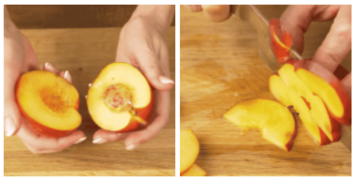 9. 2 нектарини або персики розрізаємо навпіл і виймаємо кісточку.