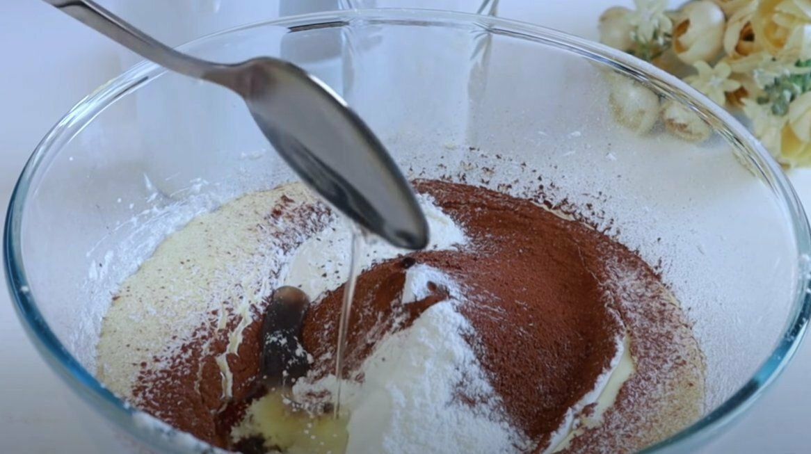 Додаємо соду, розпушувач і олію. Замішуємо тісто.