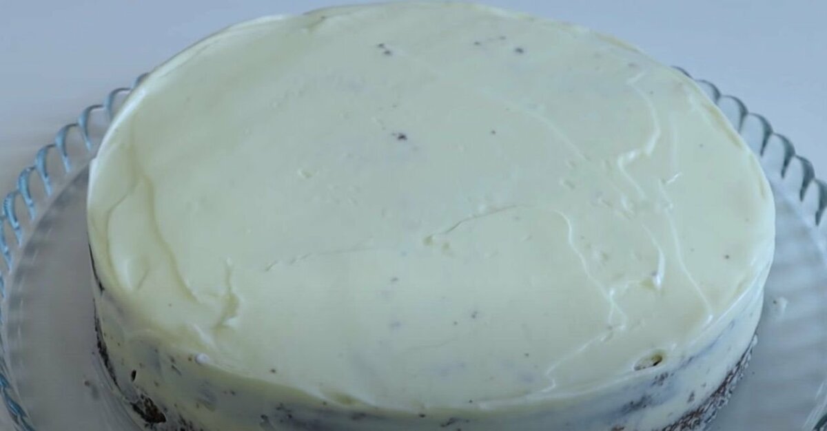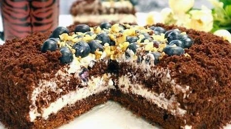 Обсипаємо торт крихтою з зрізаної бісквітної верхівки і прикрашаємо за бажанням.