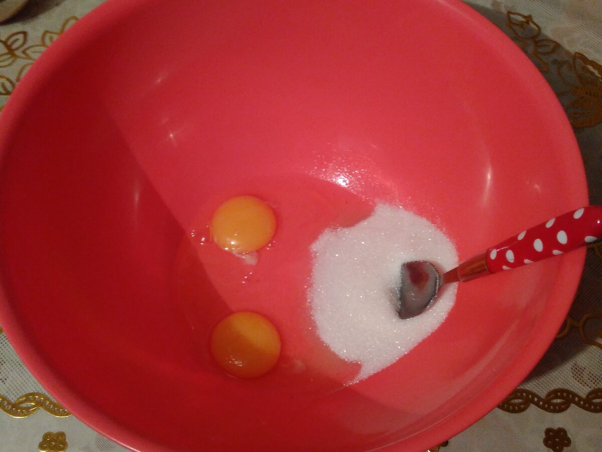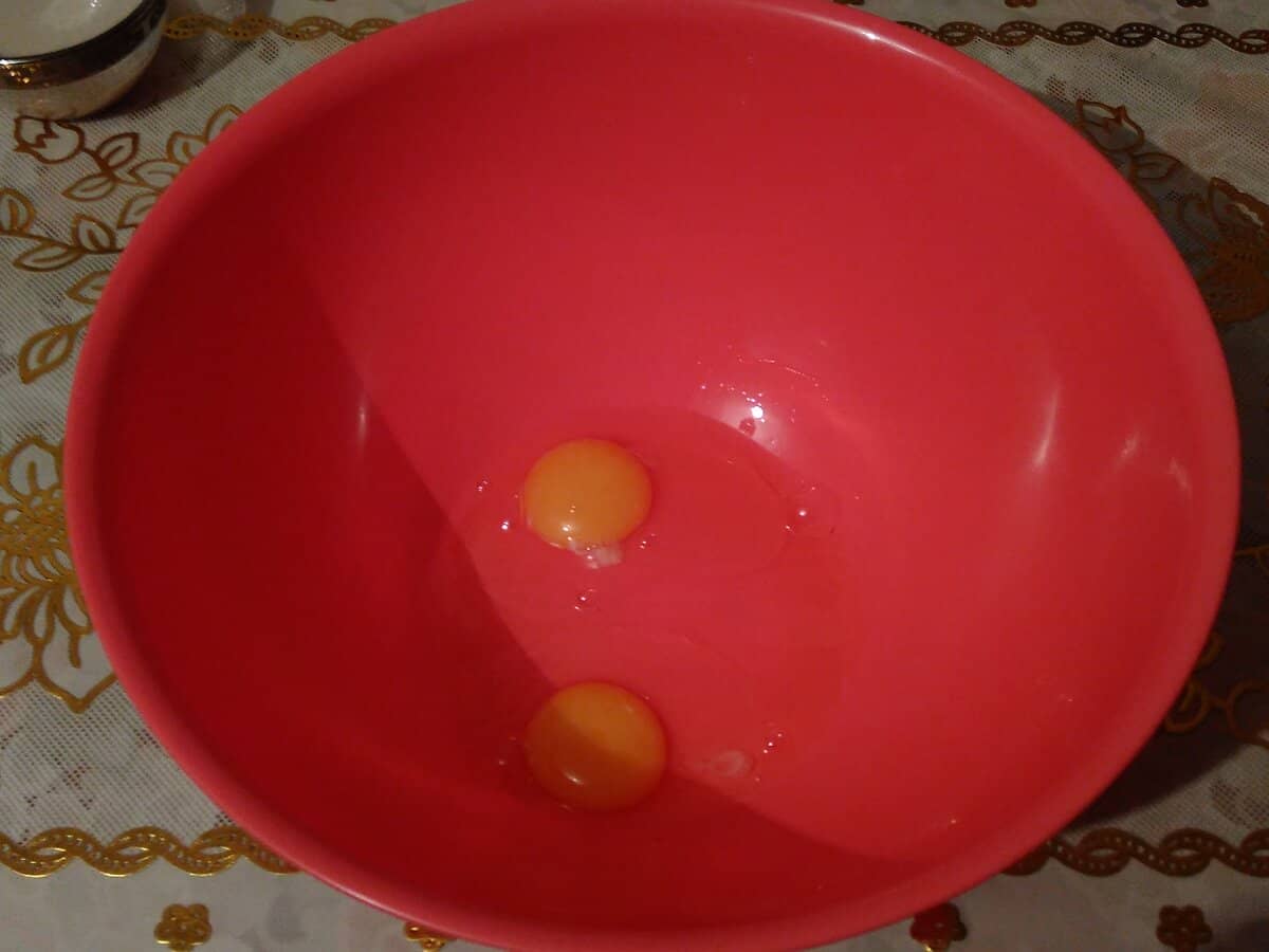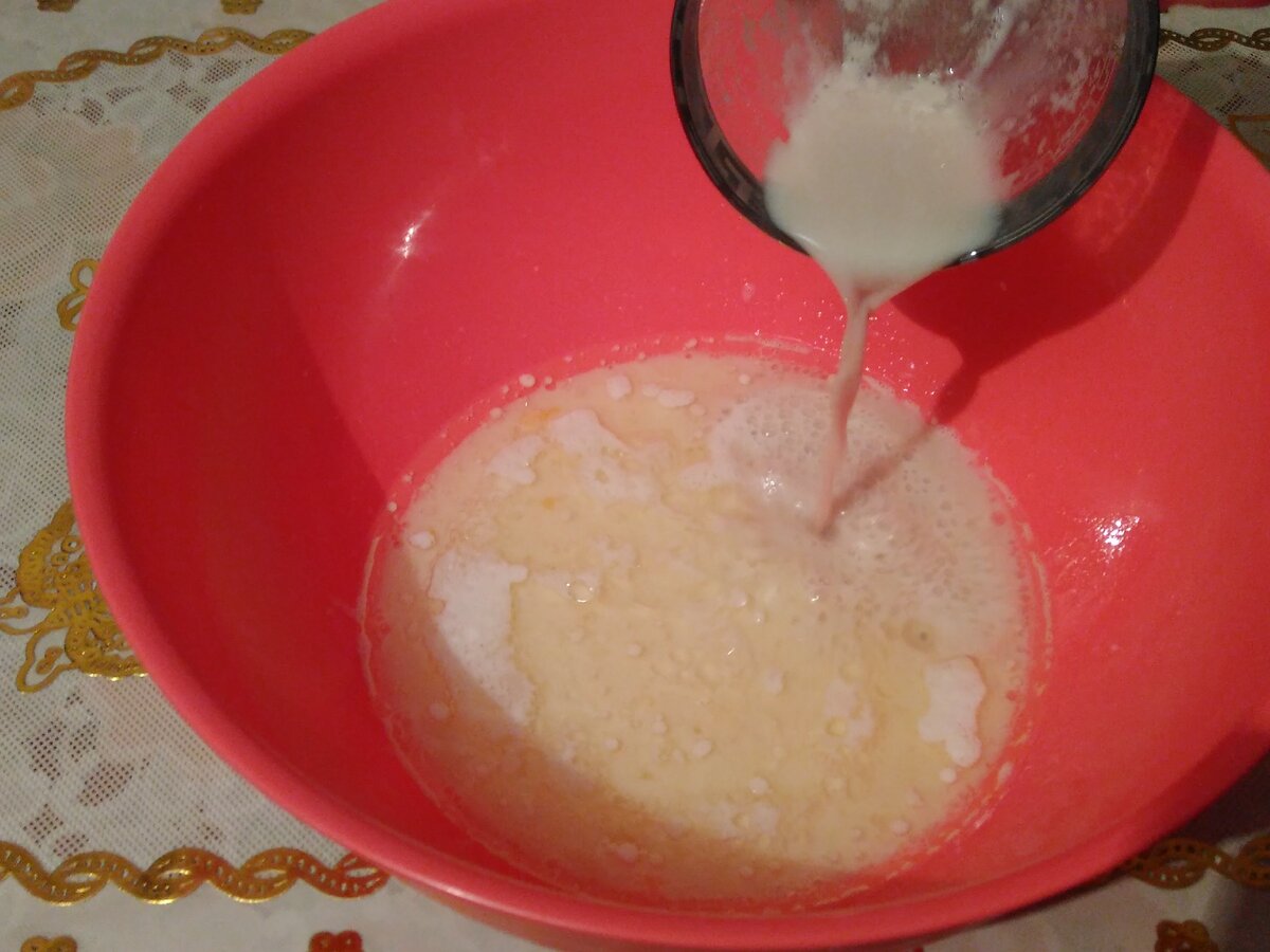4 . Поки опара вистоюється, розбиваю в миску яйця.