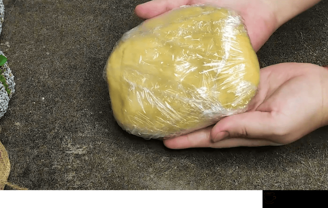 - Отримане тісто перекладаємо на харчову плівку, загортаємо та відправляємо в холодильник на 10-15 хвилин.