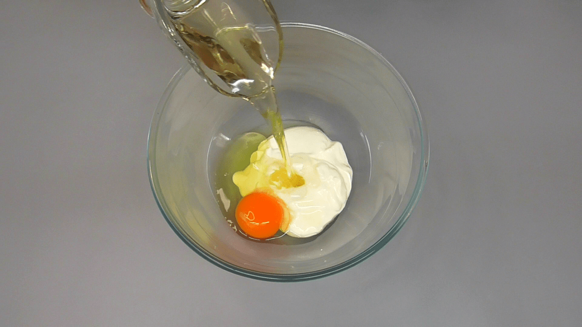 В сметану додаємо яйце, цукор, олію, сіль, ванільний цукор і все ретельно перемішуємо. Я трохи збиваю масу ручним вінчиком, щоб розчинити цукор.