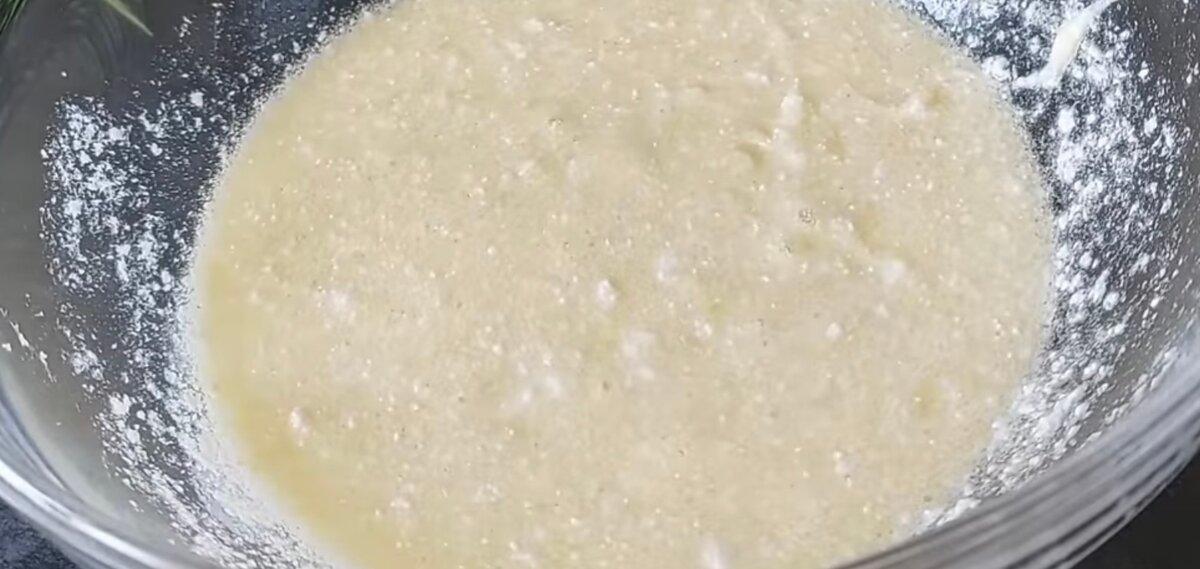 Насипаємо поступово борошно, розпушувач, змішуємо. Руками формуємо тісто.