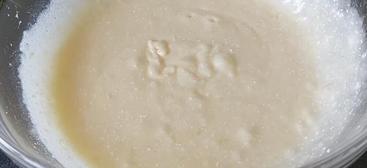 Виливаємо яйця, змішуємо. Всипаємо лимонну цедру і змішуємо.